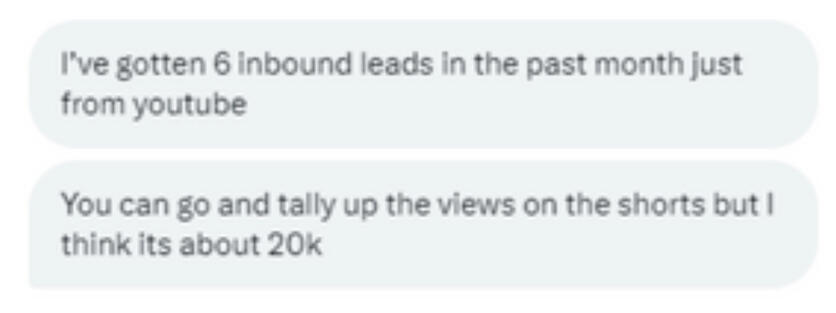 We come up with video ideas, scripts, guide you through the recording process and edit them. A couple hours of recording per month and this YouTube flywheel will generate you video content and those sweet inbound leads I was telling you about.